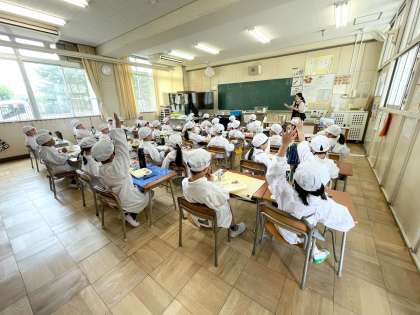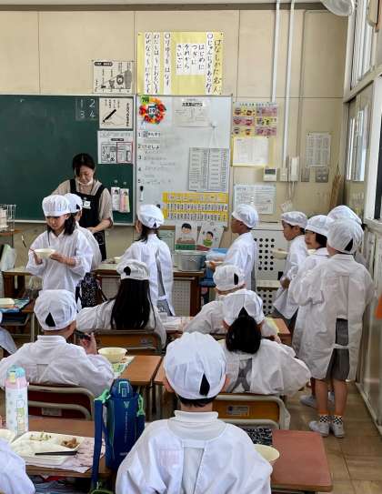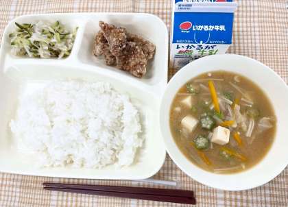 今日の献立は、ごはん・豚肉のたつたあげ・みそ汁・切干し大根のゆずの香あえ・牛乳です。