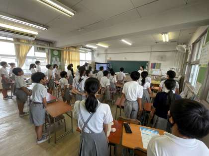 終業式の6年生の教室での様子です。さすが6年生!話を聞く姿勢も歌を歌う姿勢もとてもよいです。1学期のよいしめくくりとなりました。