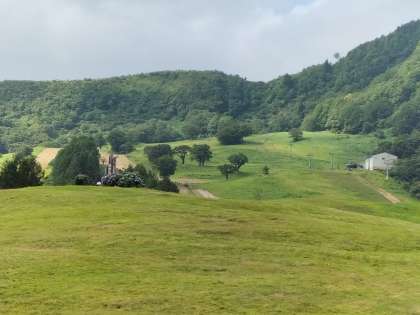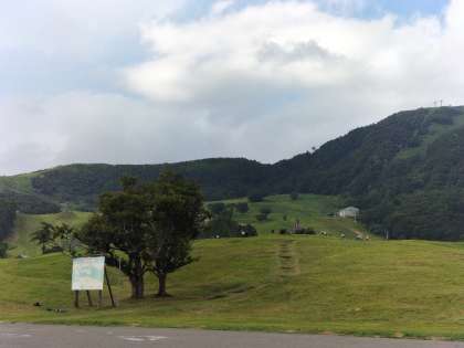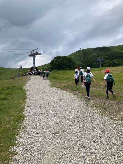 モニュメントの前で学級写真を撮って、高丸山登山に出発です!景色がよく、見渡す限りの緑がとてもきれいです!