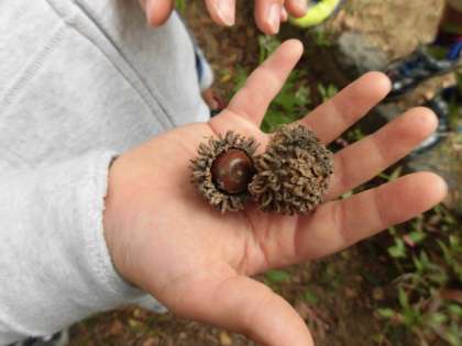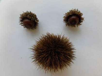 2枚目の写真も、えの森で拾った、クヌギとクリです。何かの顔に見えるでしょうか?
