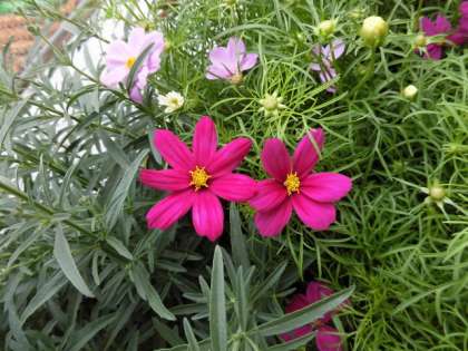新しく植えたのは、「アズレア」と「コスモス」です。アズレアはサルビアの仲間で、「空色」という名前の由来のとおり、さわやかな秋空色をしています。