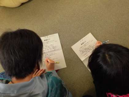 中央少年サポートセンターより講師を迎え、5年生対象に「非行の防止」と「犯罪被害の防止」についてお話をしていただきました。ペープサートなども交えたわかりやすいお話で、子どもたちは振り返りシートに、「万引きは絶対にしない。もし誘われても断る。見張りをするのも犯罪。やめるように注意するのが本当の友達。家族が悲しむことをしない。」などと、感じたことやわかったことを書き込みました。用紙の裏面にまで、びっしりと書き込んでいる子もいました。