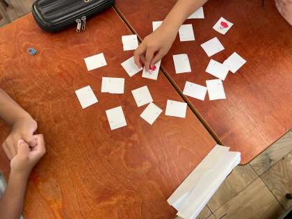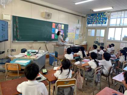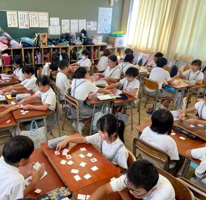 色について学習しました。好きな色をたずねたり、カードゲームをしたり、歌を歌ったりしながら、元気いっぱいにたくさん英語を話しました。
