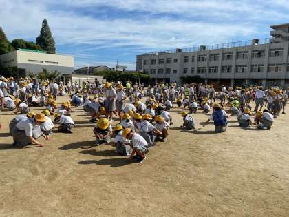 運動会に向けて、本格的な練習が始まる前に、スマイル隊で運動場の石拾いをしました。