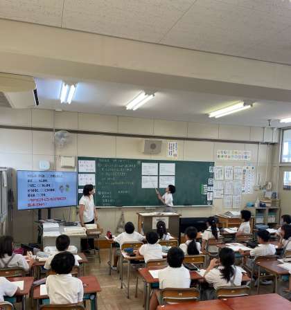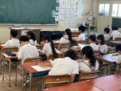あまりのあるわり算を学習しています。20÷6の答えの見つけ方を考えました。図や式や言葉を使いながら、自分の考えをペアで交流したり全体で発表したりしました。