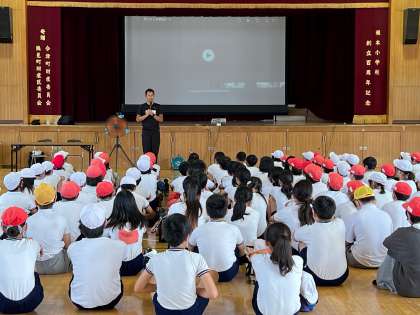 陸上競技の荒川大輔さんと宮川洋也さんをお招きした「夢授業」を行いました。将来の夢との向き合い方について、自身の経験をもとに話してくださいました。走り方のポイントやスポーツをすることで自分の身体を自由に動かせるというお話もしていただきました。
