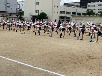 運動会に向けて、2年生と4年生の練習の様子です。2年生は、徒競走の並ぶ練習を、4年生は、ダンスの練習をしました。大人数での競技や演技になりますが、安全に気を付けてがんばっています。