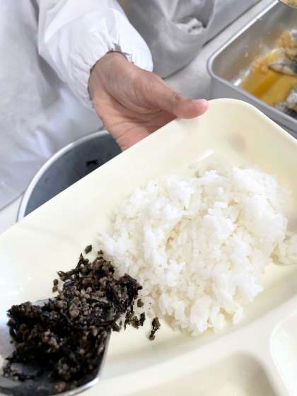 今日の献立は、ごはん・さごしのみぞれかけ・みそ汁・牛ひじきそぼろ・牛乳です。