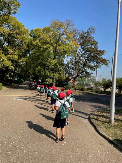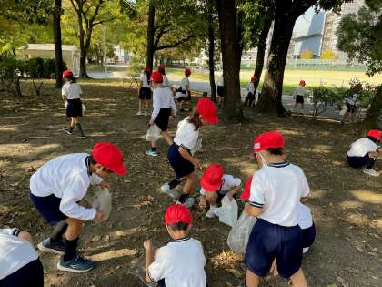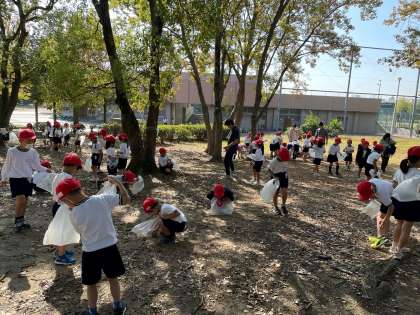 久宝寺緑地でどんぐり拾いを楽しんでいます。