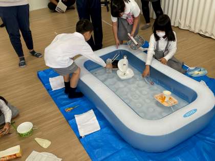 グループになって、自分たちの動くおもちゃをレベルアップさせました。