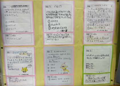 図書委員会の児童が作成をした読書クイズとその答えを掲示しています。