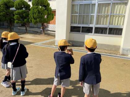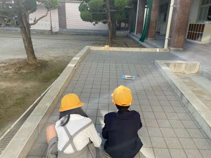 鏡を使って、はね返した日光を重ねるとどうなるのかを実験しました。