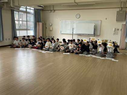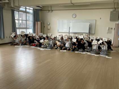 エイトビートのリズムにのって、あんパン・ぶどうパン・カレーパン・メロンパンチームに分かれて、パンの名前をリズムに重ねました!リズムにのって声も元気いっぱいでした。