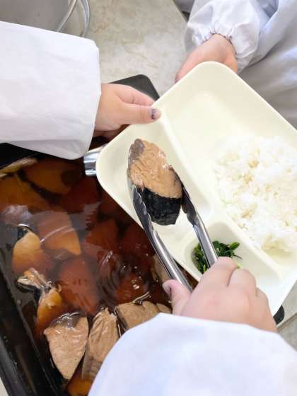 給食では しょうがと一緒に煮付けます。