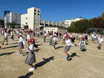 今日は、3年生と5年生が20分休みになわとびに取り組みました。「ポップコーン」の音楽に合わせて、最後までがんばります。