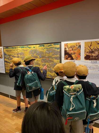 いろいろな展示物をみて、歴史の学習を振り返っています。