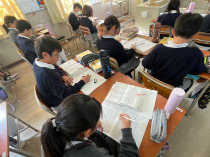 国語辞典を使って「ごんぎつね」の意味調べをしました。みんな辞書引きに集中して、ワークシートを仕上げていきました。