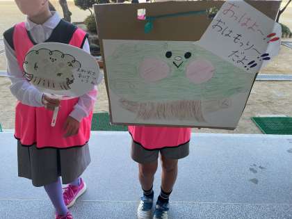 今日から1週間は、あいさつ週間です。朝は、正面玄関であいさつ当番の児童が元気よくあいさつをしてみんなを迎えます。気持ちのいいあいさつで朝のスタートです!