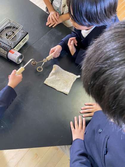 火を使っての実験ですが、安全に気をつけて学習できました。
