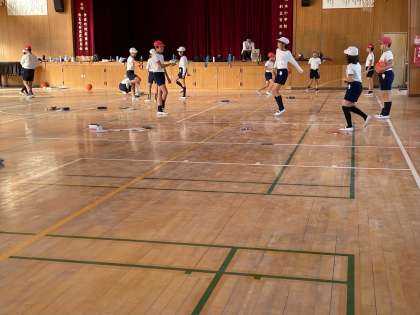 跳ぶ運動を中心に、グループでパフォーマンスを考えました。