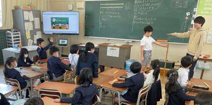 長い長さを測る学習をしています。1メートルものさしや30センチメートルものさしを使って、ものの長さを比べたり、1メートルは、どのくらいかの長さかを予想して測ってみたりしました。