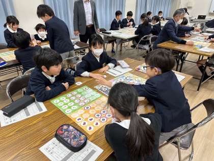 4人グループでカードゲームをし、資源を大切にするにはどうすればよいか考えました。たくさん資源を使いすぎないようにグループで相談して協力することができました。