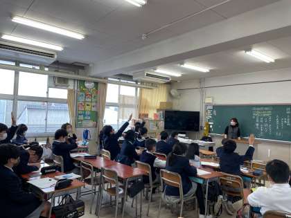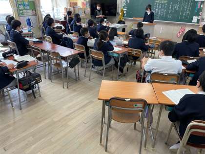 友達のスピーチを聞いて、よいところを発表しました。話し方や、文献からの引用の仕方、間も取り方など、よいところをたくさん見付けることができました。