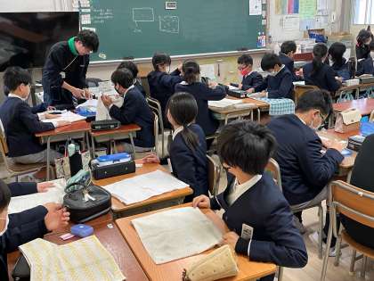 タオルを二つに切って、手縫いでぞうきんを縫います。波縫いで、丁寧にがんばります!