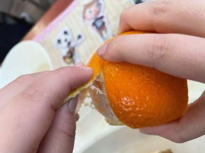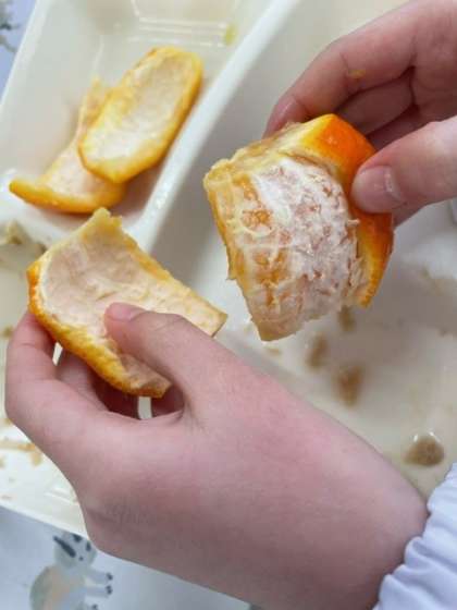 小さな手でも 上手に皮がむけました。