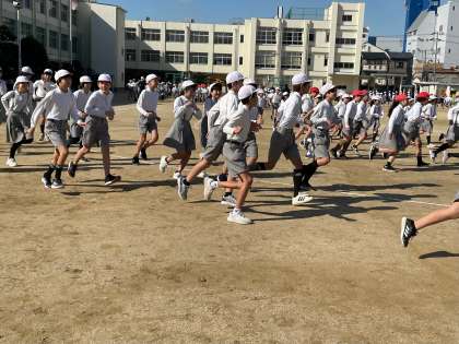かけあし週間です。音楽に合わせてかけ足をしたり、歩いたりを繰り返します。無理のない範囲で、自分のペースでがんばっています!!