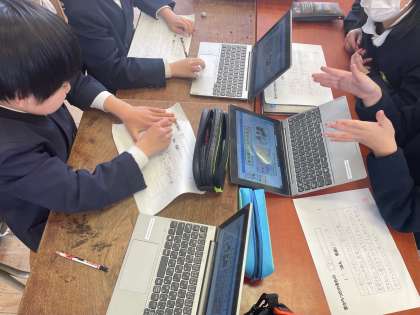 昔から伝わるものについて調べて、班で発表ノートにまとめました。今日は、そのスライドについて、発表の練習をしました。