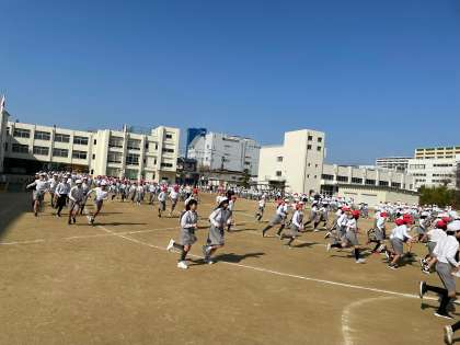 かけあし週間最終日でした。毎日20分休みに、偶数学年と奇数学年に分かれて取り組んできました。教室の前では、1年生が「がんばって〜!!」と偶数学年の走る姿を応援していました。