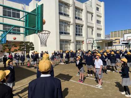 今週の20分休みは、EFC(榎本フリースローカップ)を行っています。バスケットボールにゴールをしたり、運動委員が持つフラフープにゴールしたりして競います。周りの友だちの応援も嬉しいですね。