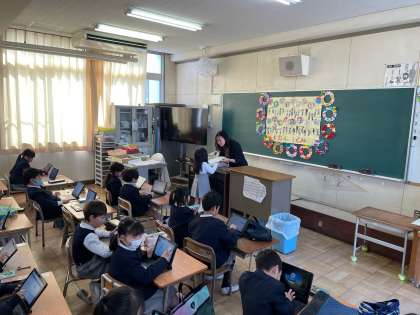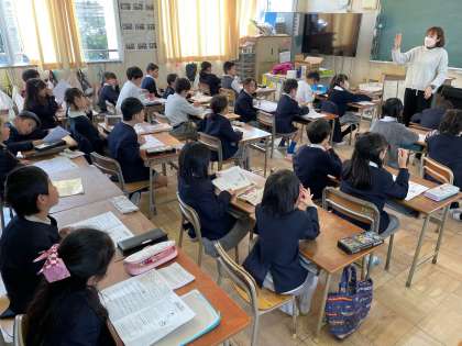 修了式後、教室では、先生から一人一人にがんばったことを伝えていただきながら、あゆみを受け取りました。また、春休みの生活についてのお話を聞いたりしました。3時間目には、机と椅子の移動をしてみんなで来年度の準備をしました。