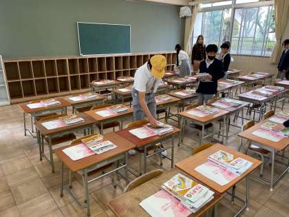 式場の準備や、1年教室準備、清掃など各場所でお手伝いをがんばりました。頼もしい6年生です。