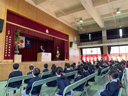 式では、校長先生のお話をしっかりと聞くことができていました。