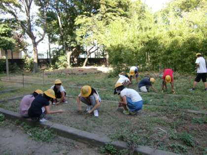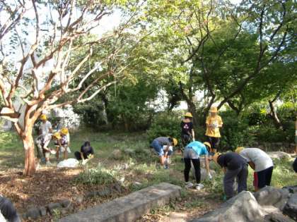 いろいろな木の切り口や樹皮に鼻を近づけ、