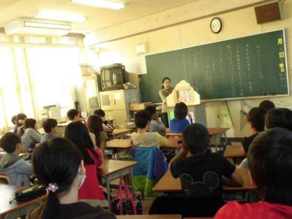 今日は、高学年の「ファンタジータイム」でした。学級担任以外の先生から、読み聞かせをしてもらう時間です。