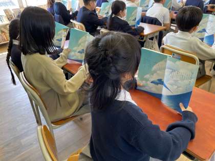 与田準一さんの「ぼくらのもの」を音読しました。一行ごとに読む人を変えたり、みんなで読んだりと、色々な読み方で音読しました。姿勢もとてもよかったです。