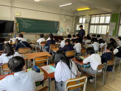 初めての家庭科の時間です。今日は、朝起きてから夜寝るまで、いつ、だれと、どのように過ごしているのかを振り返りました。どの家庭においても過ごし方は違っても、自分たちの成長を支えてくれていることを改めて感じたようでした。