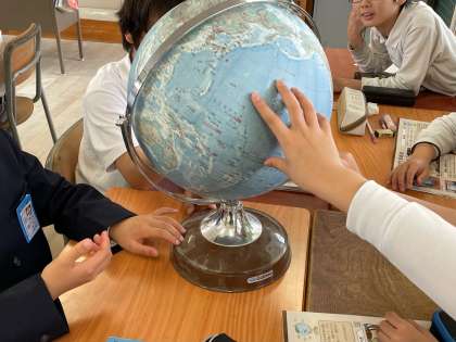 地球儀と地図帳の違いや、緯度と経度について学習しました。日本はどこにあるのかな?6大陸は?グループごとに地球儀を置いて、地球儀クイズにも挑戦しました。