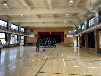 写真屋さんに来ていただき、講堂で学級写真を撮影しました。上着のご準備ありがとうございました。