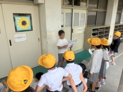 職員室や校長室、保健室だけではなく、えのもりや講堂、プールなど1年間で使うことがある場所も案内しました。