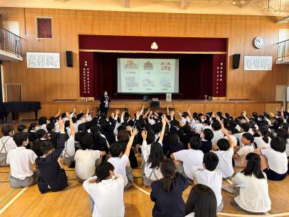 社会科で学習した「税金」の使われ方について、クイズ形式で楽しく教えていただきました。