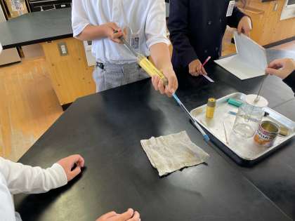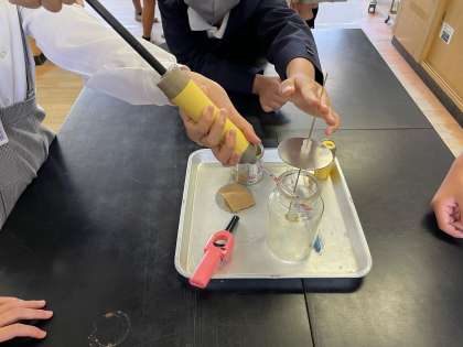 ものが燃える時、空気中の気体にはどんな変化があるのかを、気体検知管を使って調べました。酸素や二酸化炭素の体積の割合には、どんな変化があったかな。