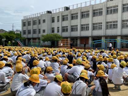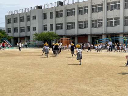 火災を想定して、避難訓練を行いました。「お・は・し・も・ち」守って、素早く安全に避難することができました。