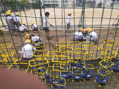 学年でサツマイモを育てます。