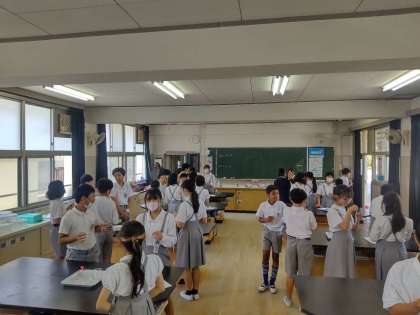 理科室での消化の実験の様子です。