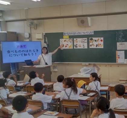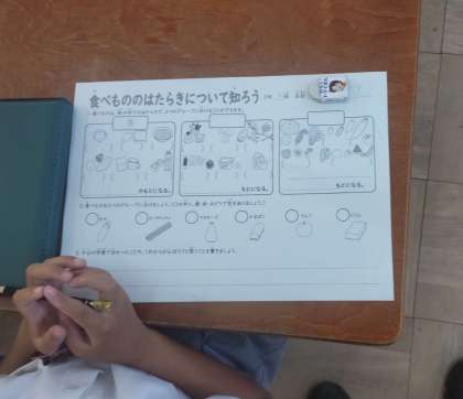 今日は2年生に「食べ物のはたらきについて知ろう」というめあてで、栄養についての指導をしていただきました。