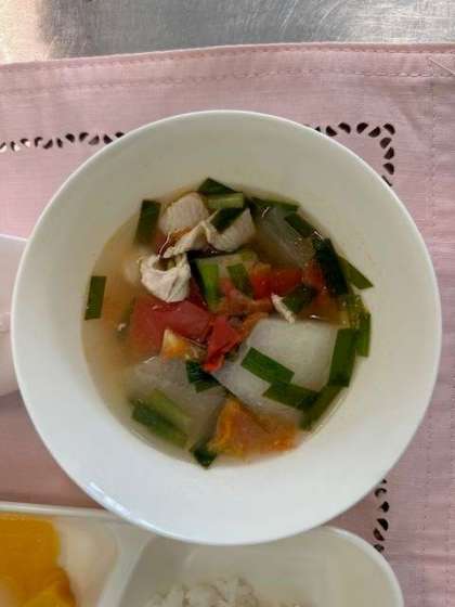 ・パワースープには、とうがん、ニラ、生のトマトを使用しています。